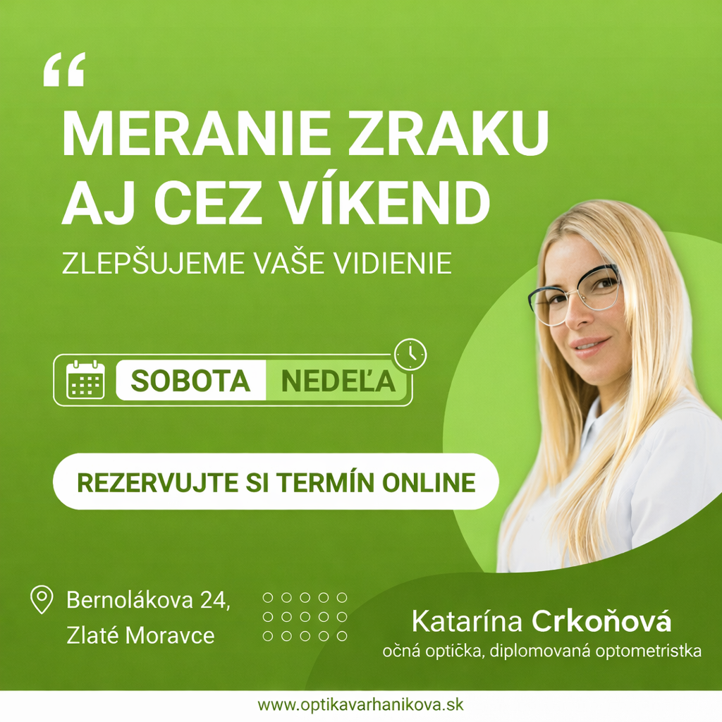 Nájdete nás v Zlatých Moravciach na Bernolákovej 24 a na Námestí A. Hlinku 24. Svoju návštevu na odborné meranie zraku si viete jednoducho rezervovať tu.